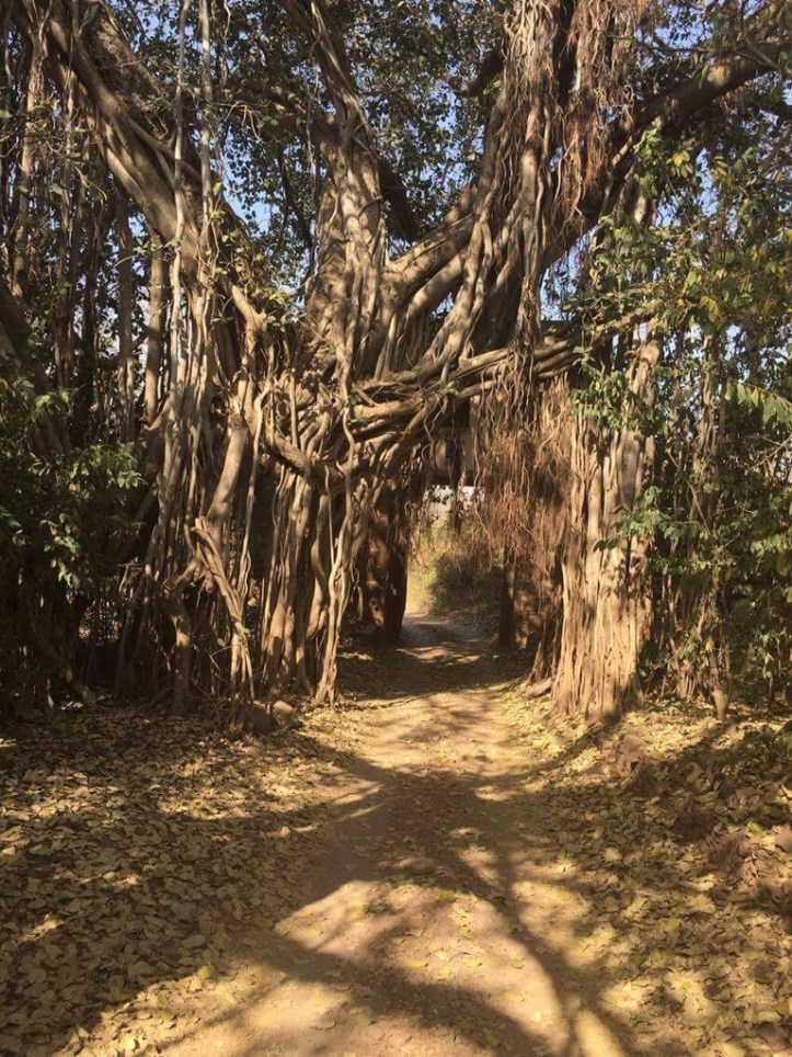 The midday was a long drawn out pool session to keep cool before our afternoons safari. We entered a different part of the park through Ganesh’s temple which was set back into jungle backdrop. The amazing Banyan trees sprawled over the crumbled bricks of the 10th century Ranthambhore fort making for a very jungle book like feel. In the midst of the vegetation, tombs and tumbledown structures clawed for sunlight. In the afternoon heat the animals searched for cover. We did spot a tiger prowling the banks of a lake, it’s great size apparent with every movement. We saw snakes moving through long grass and peacocks displaying grandly. And in one day we had seen a whole different side to India, one I had not even considered. The natural beauty of this country rivalled its long historic tapestry. The three symbols of India hiding in one special area, the national tree, the Banyan, bird, the peacock and animal, the majestic tiger.