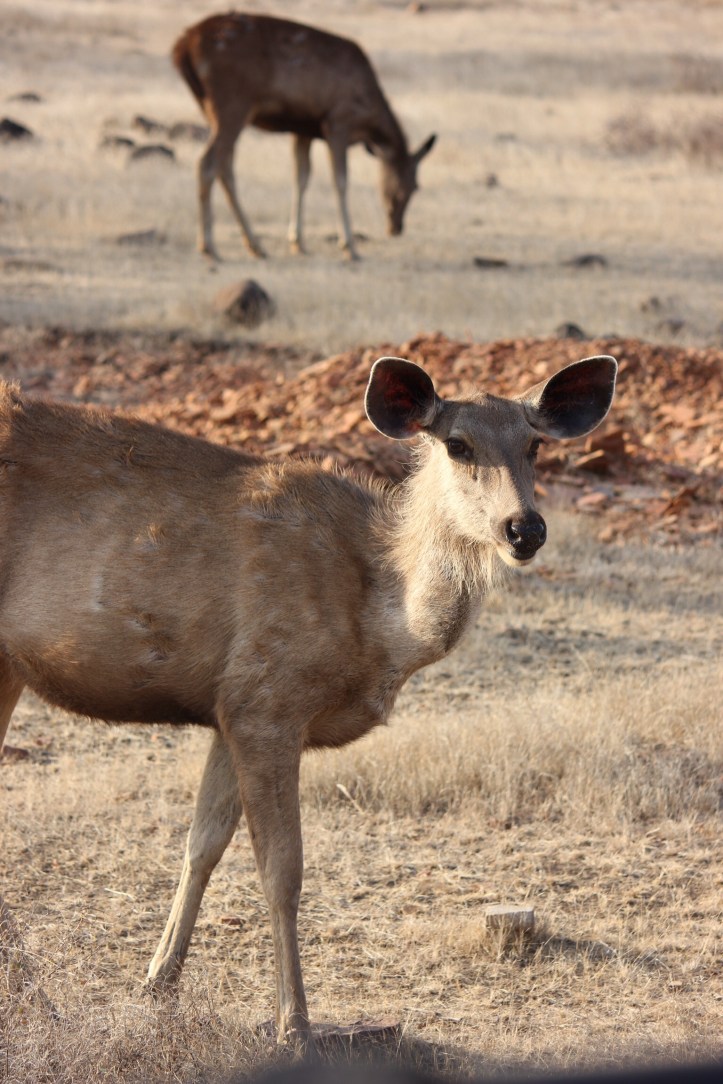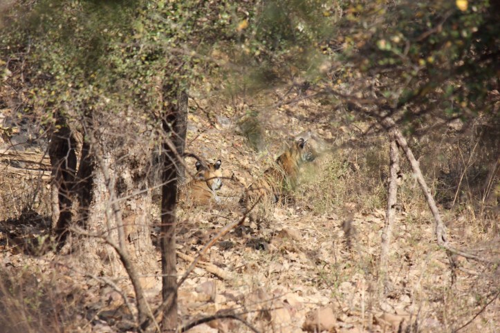 The main goal appeared to be a sighting of the tiger and before long we were lucky in that too. We came across a tiger set back in the bush in the shade with her cub. Again the camouflage was so perfectly in tune with the oranges and browns of the jungle floor, she was best visible with the flick of a tail of a stretch of the limbs. They were so large and majestic.