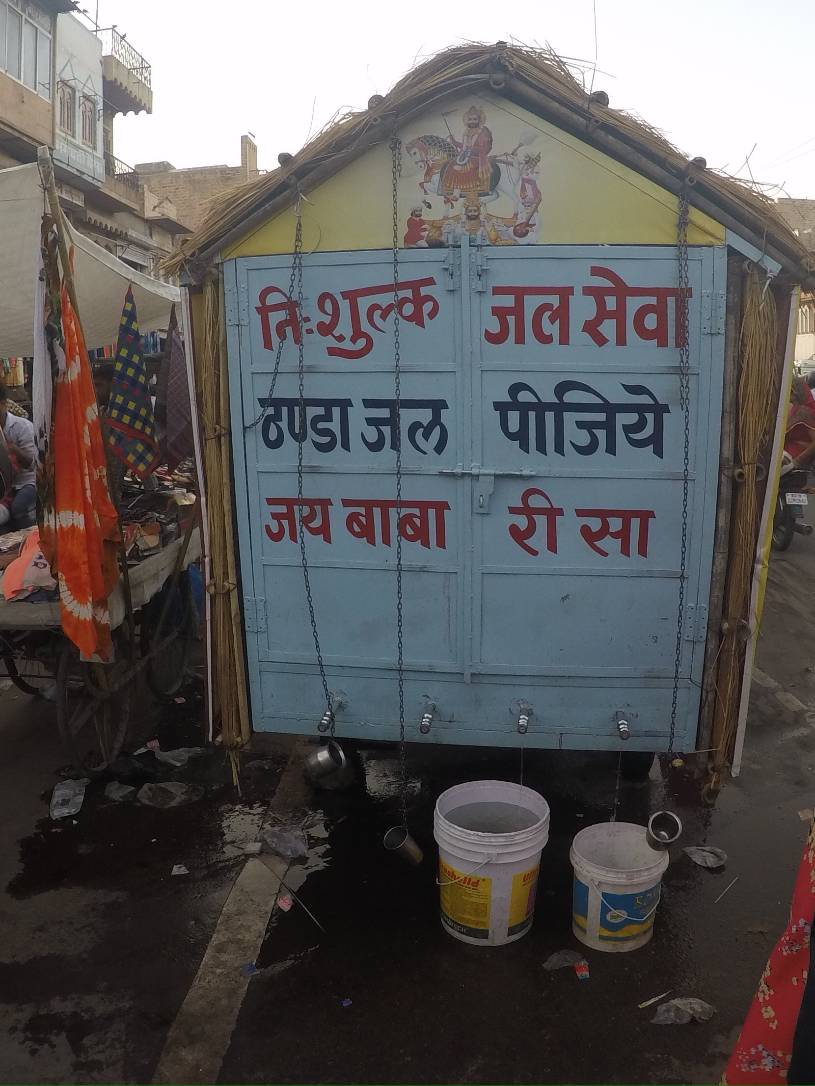 The clock tower marked the centre of the towns life and here we began making our way through the markets. The winding alleys were filled with colourful fruits and veg, some foreign to us, shoes and spices, cloths and cows. A big truck of water for the locals hung with metal cups adding to the festival feel. As always, it was an adventure to admire so many parallel lives collide.
