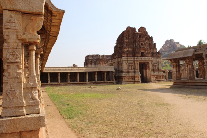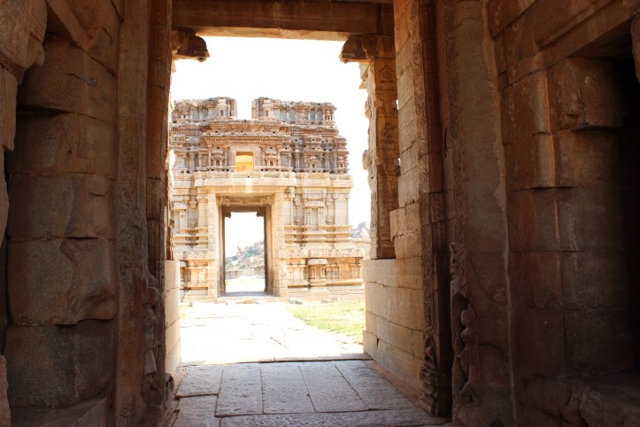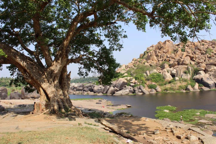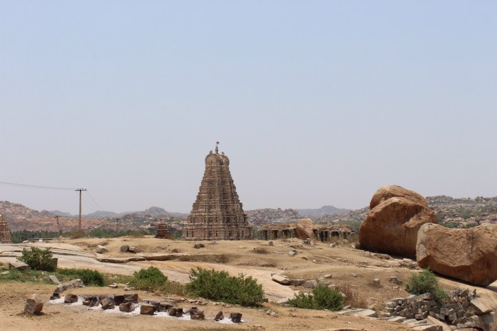 Across the river the postcard view of Hampi, the 14th century Virupashka temple, stood proud where it would have once been surrounded by a magnificent capital city. Now a few lanes of sellers in the dusty heat made up the empire of Vijayanagara. In the 16th century this was a bustling capital, destroyed by invading Islamic tribes. The structures and society of Vijayanagara were Islamic and Hinduism intertwined and the destroyers left the Muslim architecture, now leaving a random collection in the middle of ruins.