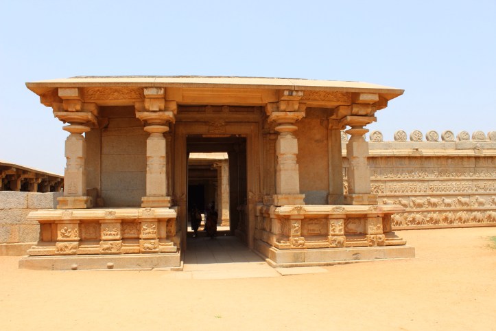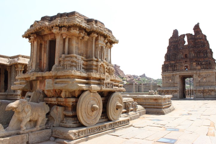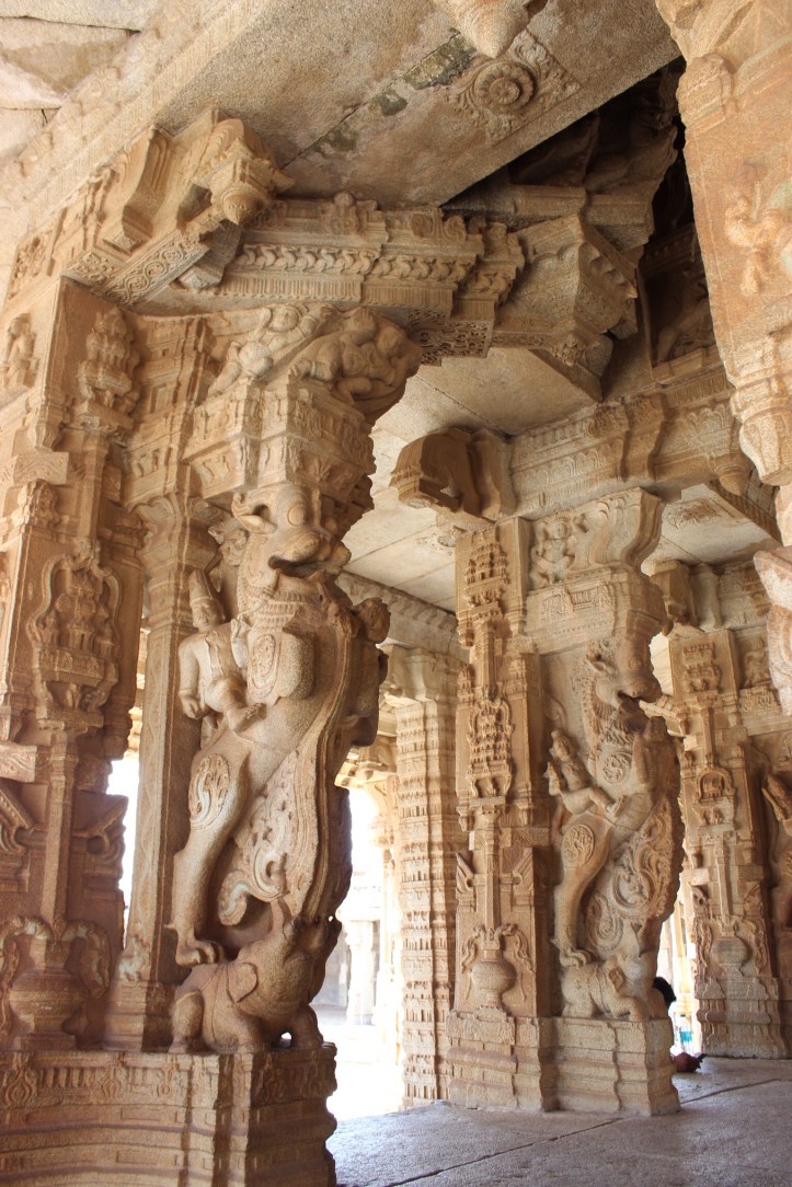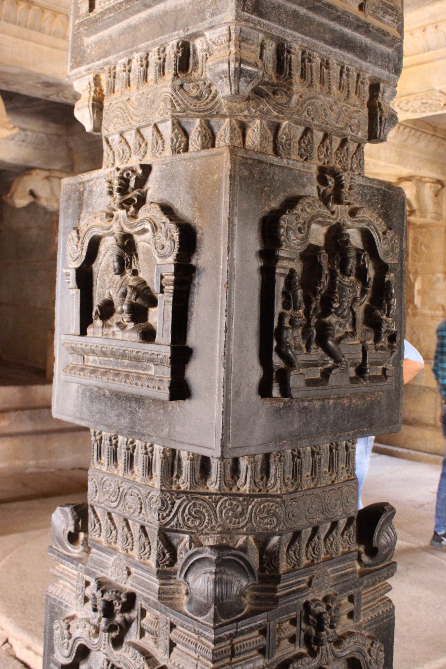 With each discovery we were marvelled more and more. The Vittala Temples complex housed a huge stone chariot and an area where weddings and ceremonies would have been thrown. The main room was where the queen was said to dance for the King, three curtains hung all the way around to make for privacy and the pillars hollowed to play different sounds to accompany her performance.