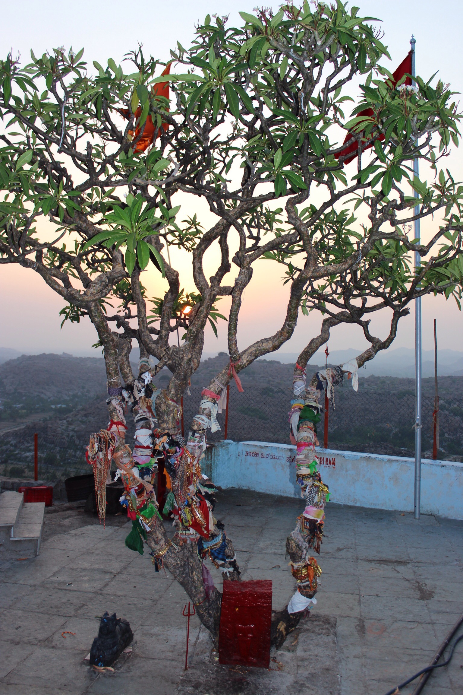 For our second early start we were feeling even more ambitious, sun up at Hanumans temple, atop 575 steps. Hanuman is a monkey God of the Hindu religion, son of Rama. Our guide had told us many endearing anecdotes about this childlike God who had once burnt his mouth attempting to eat the sun, explaining his protruding mouth. As such Rama awarded him the breeze to cool himself and so he is the God of wind and Jai Hanuman is now proclaimed as a call or thanks for wind in the heat. Being Saturday it was Hamuman’s day and a few people were making the climb. There was chanting and service inside the temple as we watched the sun climb over the horizon. Everywhere there were symbols or prayers and ritual. Rangoli’s were marked on the ground, decorating the paths. A frangipani tree was tied with coloured bands marking people’s prayers for a wedding.