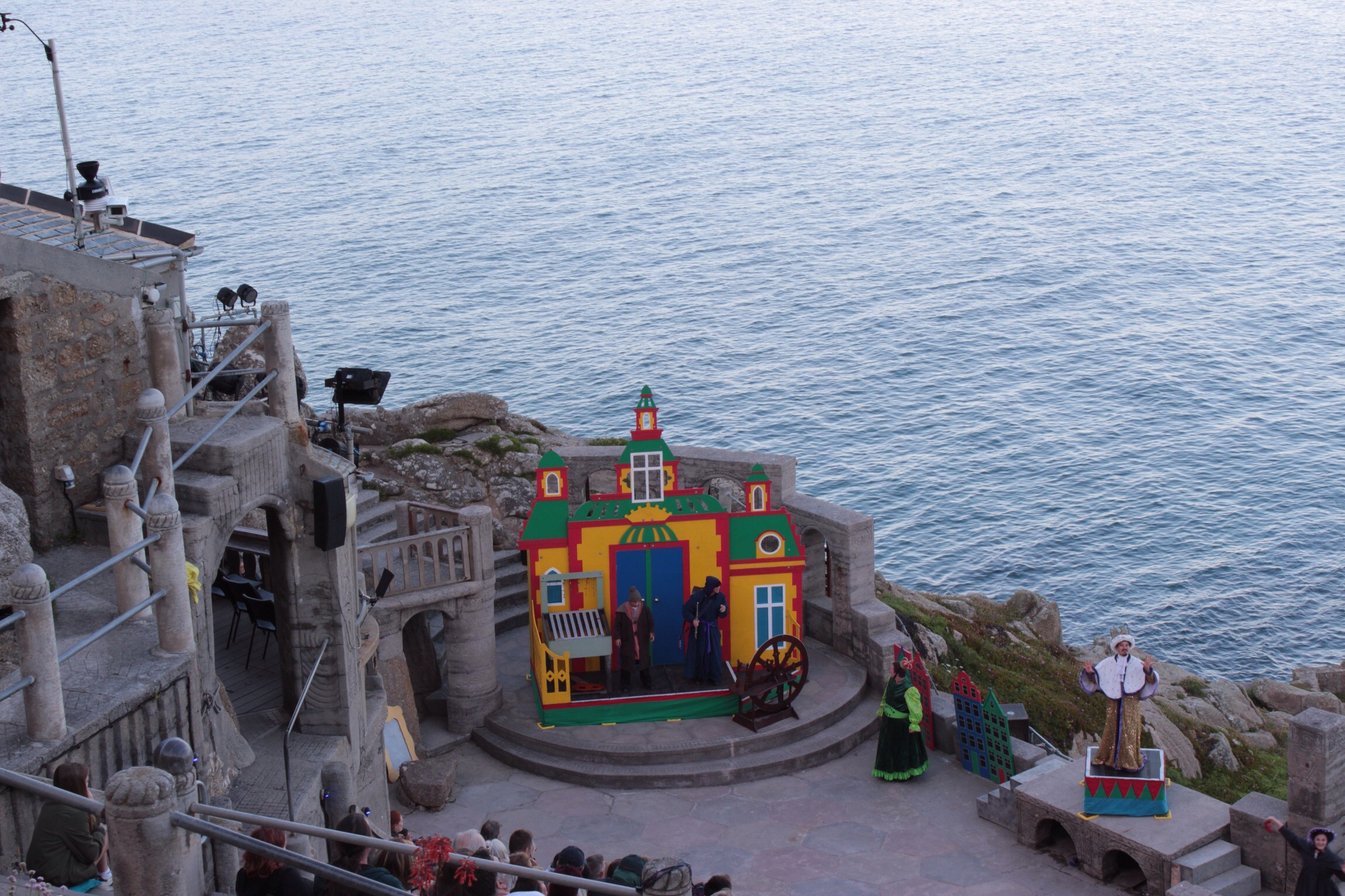 Carved into the cliffs close to Landsend is the Minack Theatre. Here steep auditorium seating looks out over a small stage and a golden sand bay. Just protected from the wind and weather, it was idyllic on a sunny evening to watch a play, performed with a cast of no more than 5 or 6.