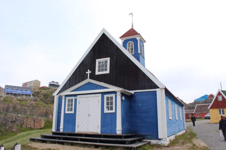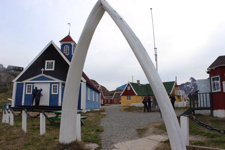 Morning brought a Scandinavian breakfast and an early stop at the coastal town of Sisimut. A port town of an impressive size, it also had an interesting open air display of life throughout the ages, from peat covered dwellings to Greenland’s first church. It’s beautiful an’all, but would you pay 60 buckets of Whale blubber? The first church marked a big change in Greenlandic society brought about by the Danish missionaries, as the people were previously Shaman. Believing in ancestral spirits and many beings was condemned by the church and under pressure, many converted.