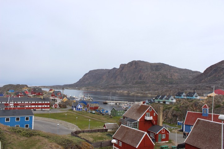 Another change of passengers to a beautiful village was done by a life boat, the port channel too small for the boat to enter. From the ship we could just see rocks with colourful houses sprouting from them, exactly the picture you imagine of Greenland.