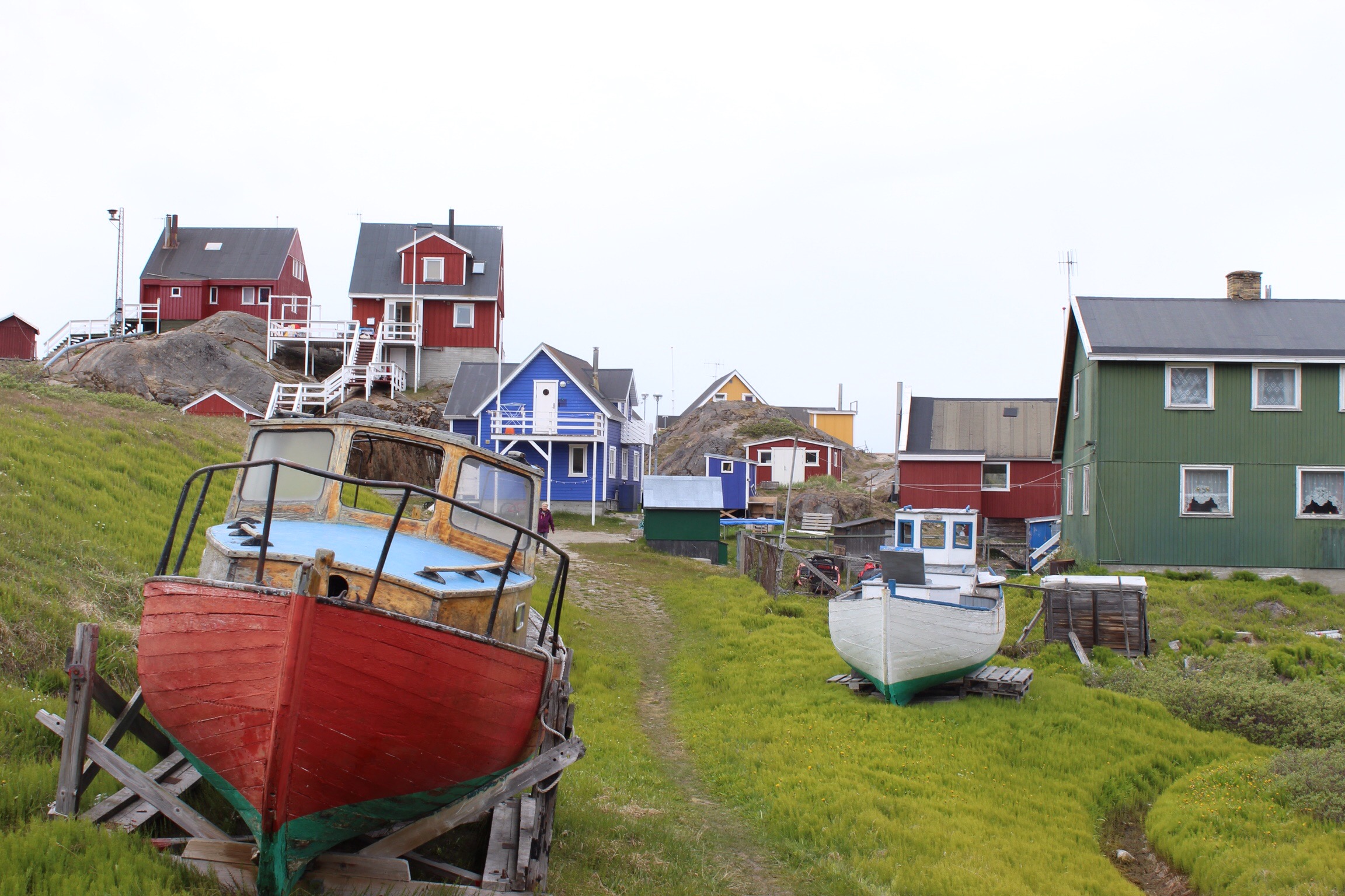 We got out for a wet walk in Maritsoq just for a quick jaunt to the church and around the town. Inbetween the colourful houses very normal life was going on. Visitors on their way to the pub, a bit of graffiti marked the buildings. In this place so far removed from our daily imaginations, life goes on.