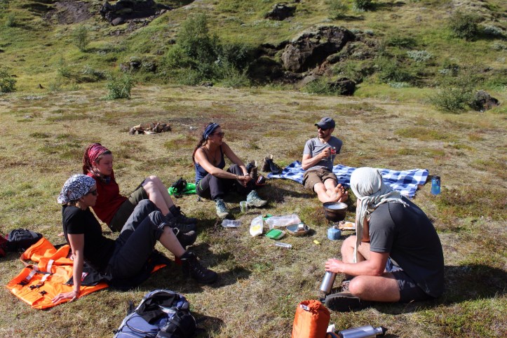 My 26th birthday started out well in this magical place. Happy birthday was chorused before I was even out of my tent, and in the wilderness it was the simple things that made it memorable. My group had saved granola and Skyr, and then we had cake for breakfast. We packed down the tents ready to head home later in the day, the showers beckoning for us. We walked the track to the viewpoint tidying the trail ahead of winter, and still had time for a quick jaunt up Tindfjall for a break with a view. After our final meal in the valley, in which I scored an extra segment of orange for it being my birthday, we made for Langidalur where all the teams would reconvene for Friday night.