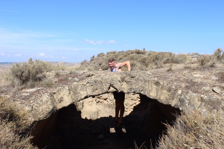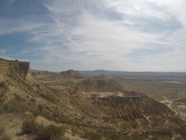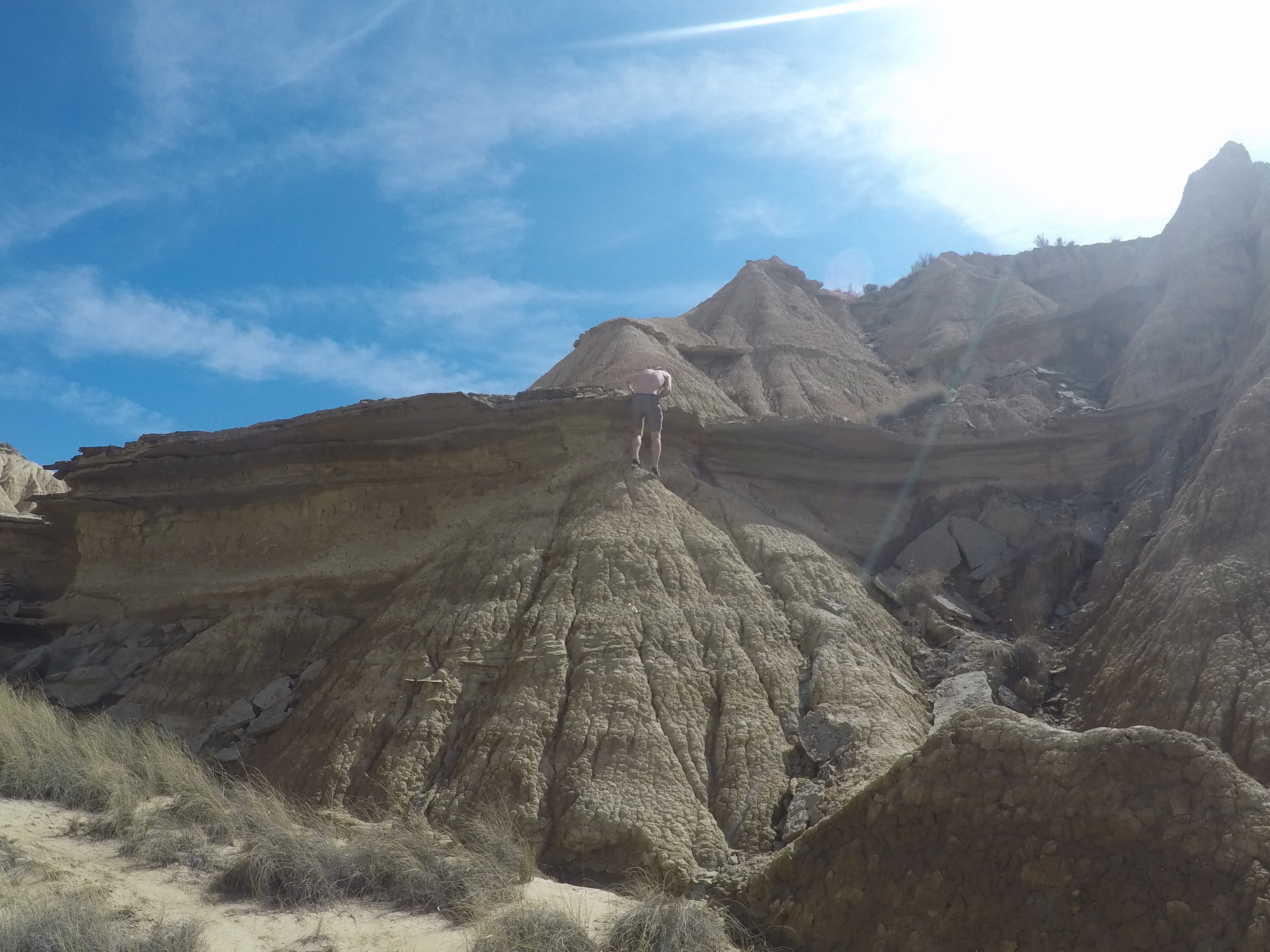 Our destination for the day was Bardenas Reales National park, which quickly was like arriving to another, arid world. The dry, desert landscape was being circled by vultures in their pairs, the gravel road leading on among plateaus of orange rock. We drove around as if on safari of the moonlike landscape, taking pictures of strange rock formations and bare landscapes.