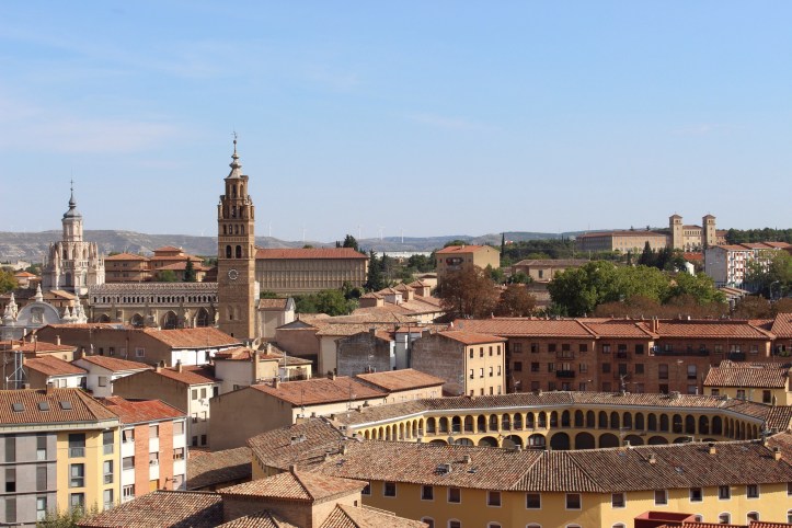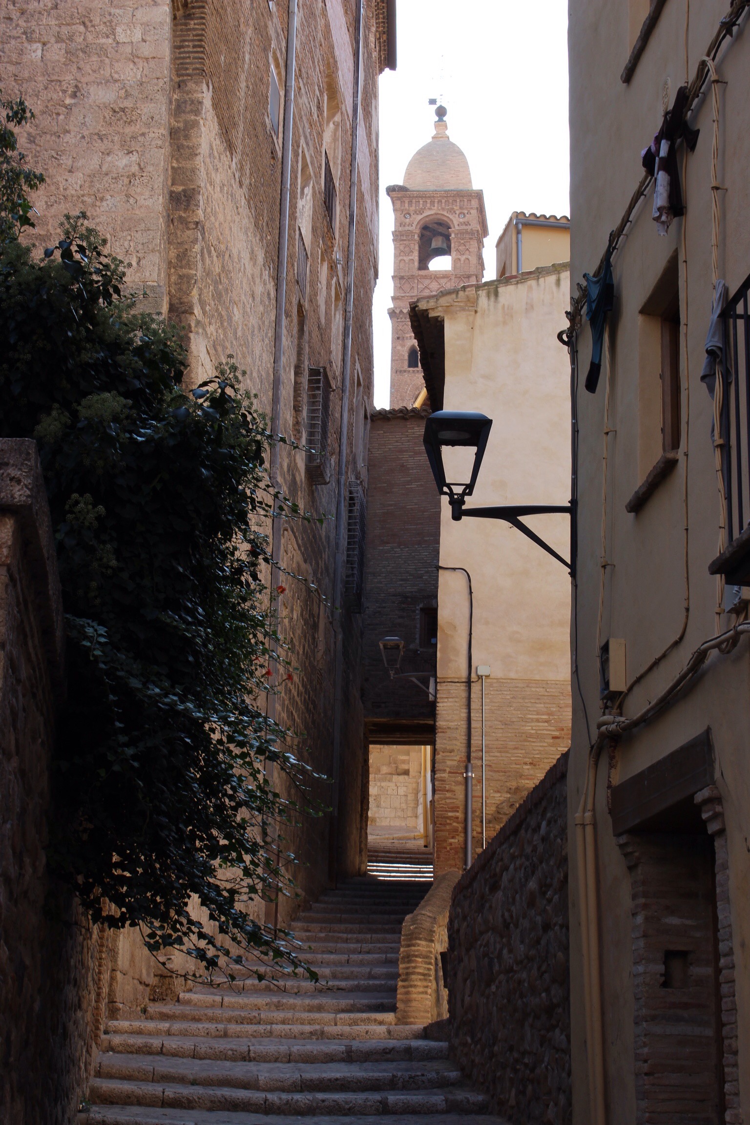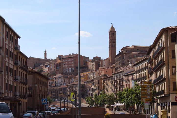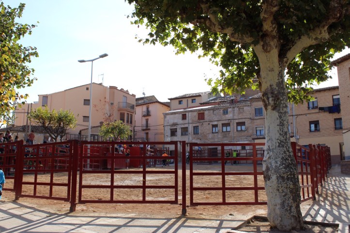 Our first sightseeing was in Tarazona, but upon arriving mid afternoon, the town was sleepy with siesta, the streets deserted. We explored the narrow streets of the new Jewish quarter, an area established after the Jews were under strict restrictions to be isolated from the Christians. The narrow streets wound up and up, hanging balconies and historic symbols describing a time past. In the square at the top of the town the first humans we saw were watering the sandy square. Upon enquiring we found out there was to be cows and bulls running the streets in an hours time. Throughout the small lanes red gates guarded the doors to prevent unwanted entry from horned creatures, and an air of festivity was just beginning. As more people gathered fair rides and confectionary started to set up, then the ambulance appeared, a mark of things to come.