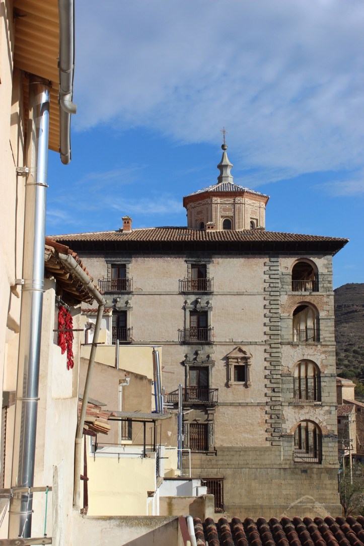 Along the road we passed now other cars, but more beautiful small towns such as Arunda de Moncayo, and bulbous rocks just looking to be climbed. We were in our evening stop of Aniñon by mid afternoon and found our gorgeous accommodation very close to the castle like church. (Not quite touching distance as David pointed out.) Our first adventure was bringing the car into the small streets of the hillside town. It was a 5 minute walk from top to bottom, but a 20 minute adventure of breath hold turns in a car, but it accentuated just how arable and self contained the town was.