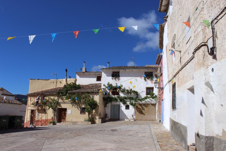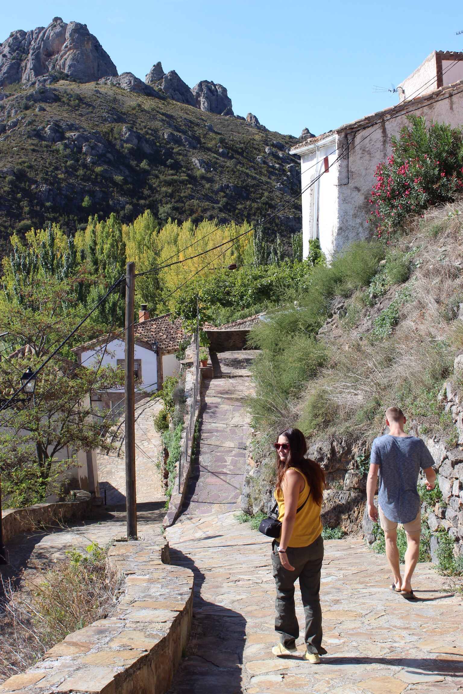 In the morning we were saying goodbye to Blas, and going into the mountains. On the winding roads we passed only rounded rocks and reddish leaves, no other cars. We pulled over in the picturesque Calcena which at first appeared devoid of people as we climbed its steep streets. Surrounding the small settlement were caves and tumbledown buildings in the cliff side. Each corner revealed more terracotta pots, fig trees and winding vines, and eventually an old man tending his garden. That being said, we encountered several friendly felines. Many dogs came out to enquire our intentions. As we got to the village square, all the people were milling around waiting for the bread (unintentional pun) which came in as a delivery from another nearby village to restock the shop. An old man greeted us ¿Quien Eres? ¡No te cono zco! Who are you? I don’t know you! His friendly enquiry emphasised the small town feel as he knew the daily comings and goings of the square.