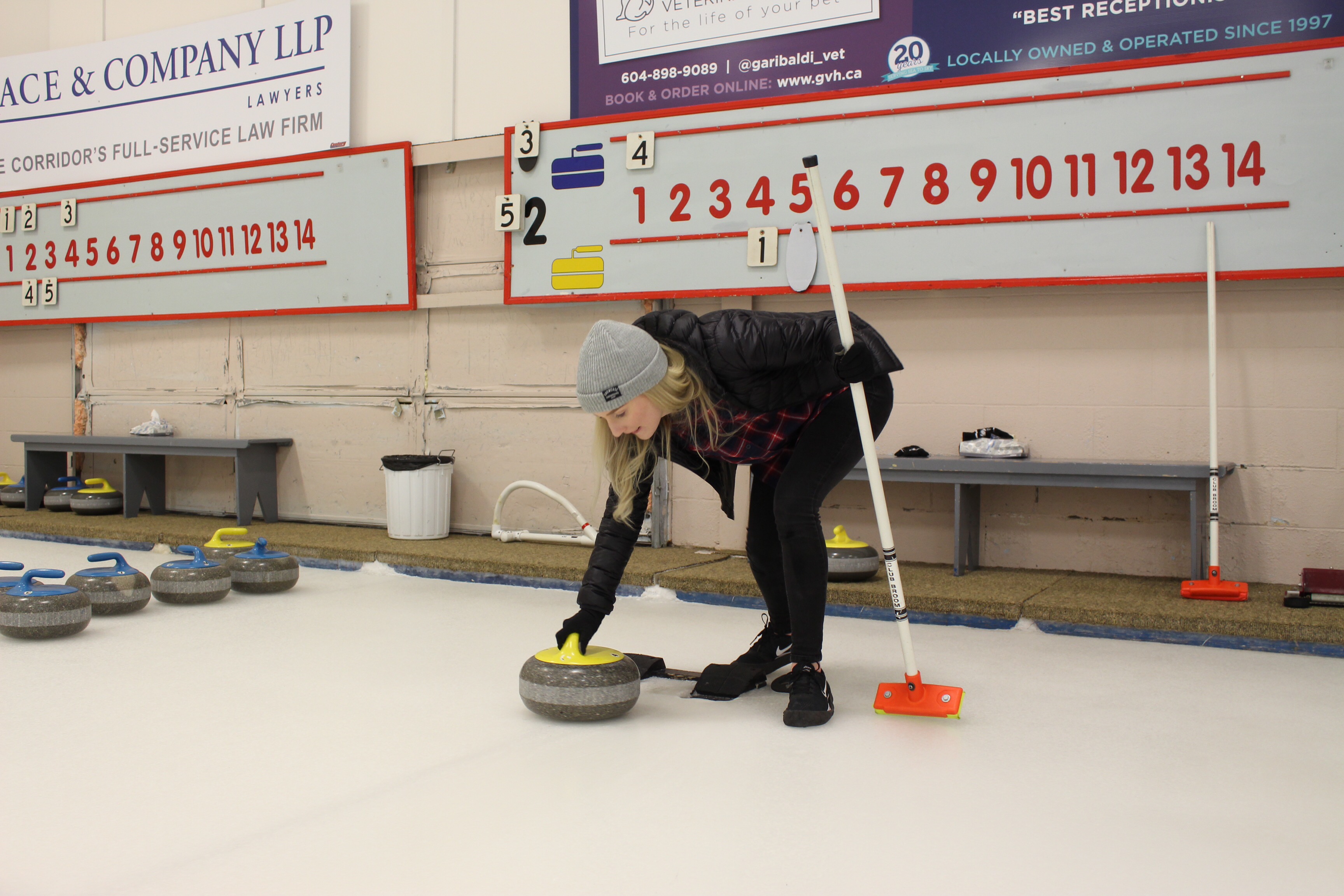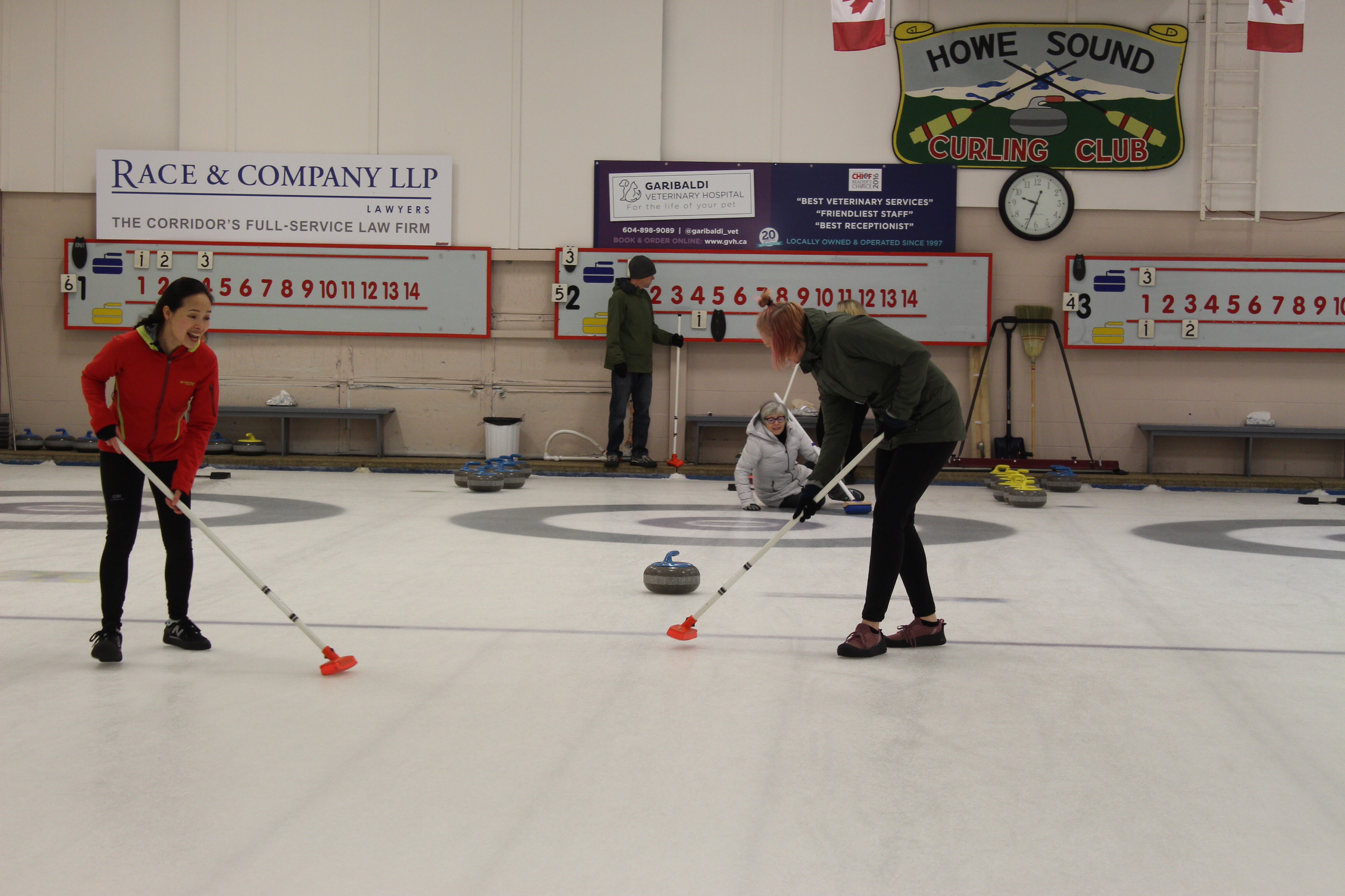We had to travel south to Squamish to play where we had rented the rink for four hours. As they begin briefing us on the new terminology, explaining the rules of the 14 ends that make up a game, I wasn’t sure this was going to be long enough to understand, let alone master the technique to launch the rocks with any sort of technique.