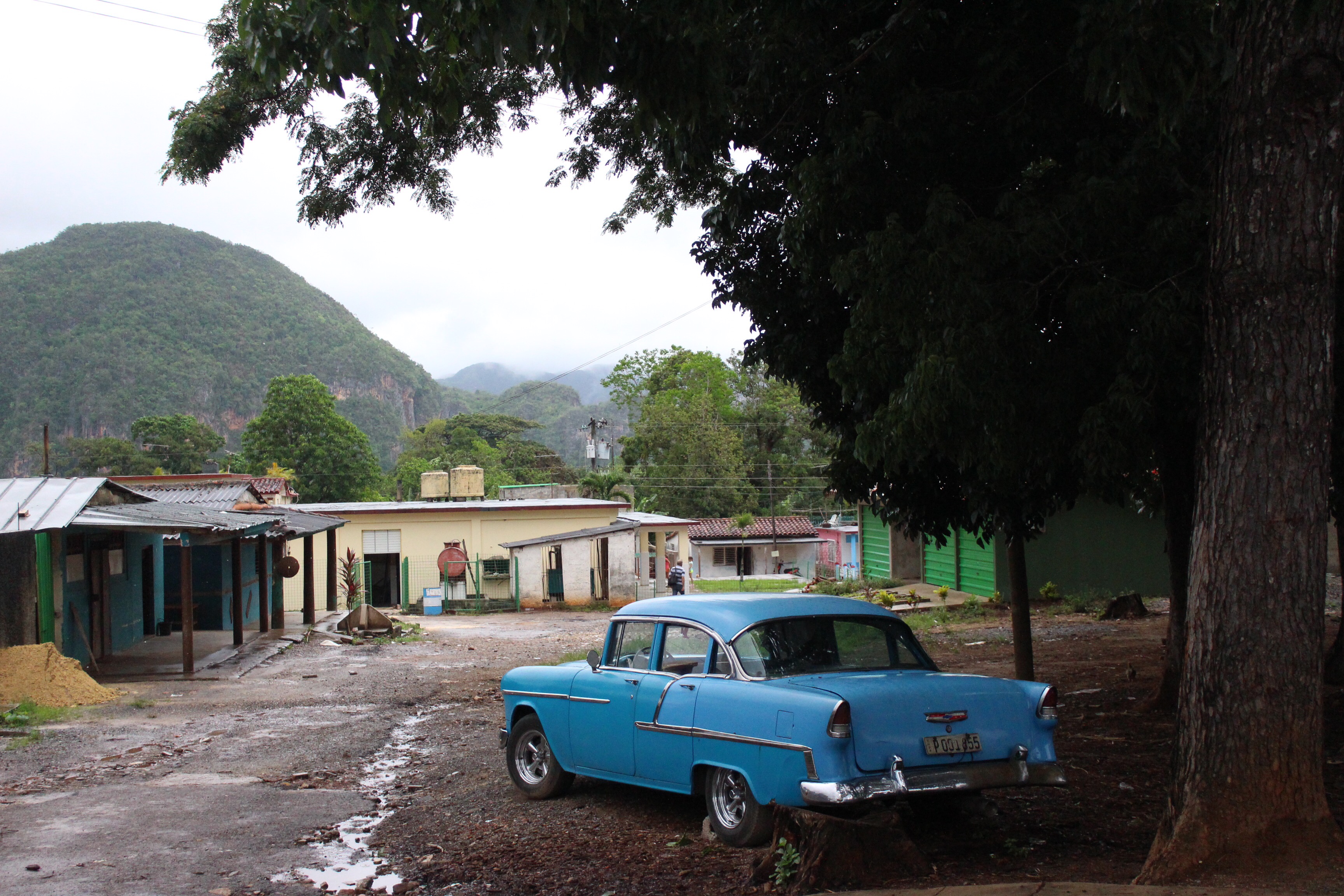 It was destination countryside as we laden the small car with our baggage and headed west to Viñales. The greenery exploded everywhere, a lush journey with many people waiting roadside to catch a carpooling opportunity. It’s a testament to how safe we have felt in Cuba so far that when our driver said he was stopping for fuel then drove past the gas station into the bush none of us bolted. Either with nervous curiosity or accepting our fate, the four of us still remained in our seats until the driver pulled up to a tumble down cottage choked by vines and two men from the bush came out with two large jerry cans and began filling the tank with a funnel, engine still running.