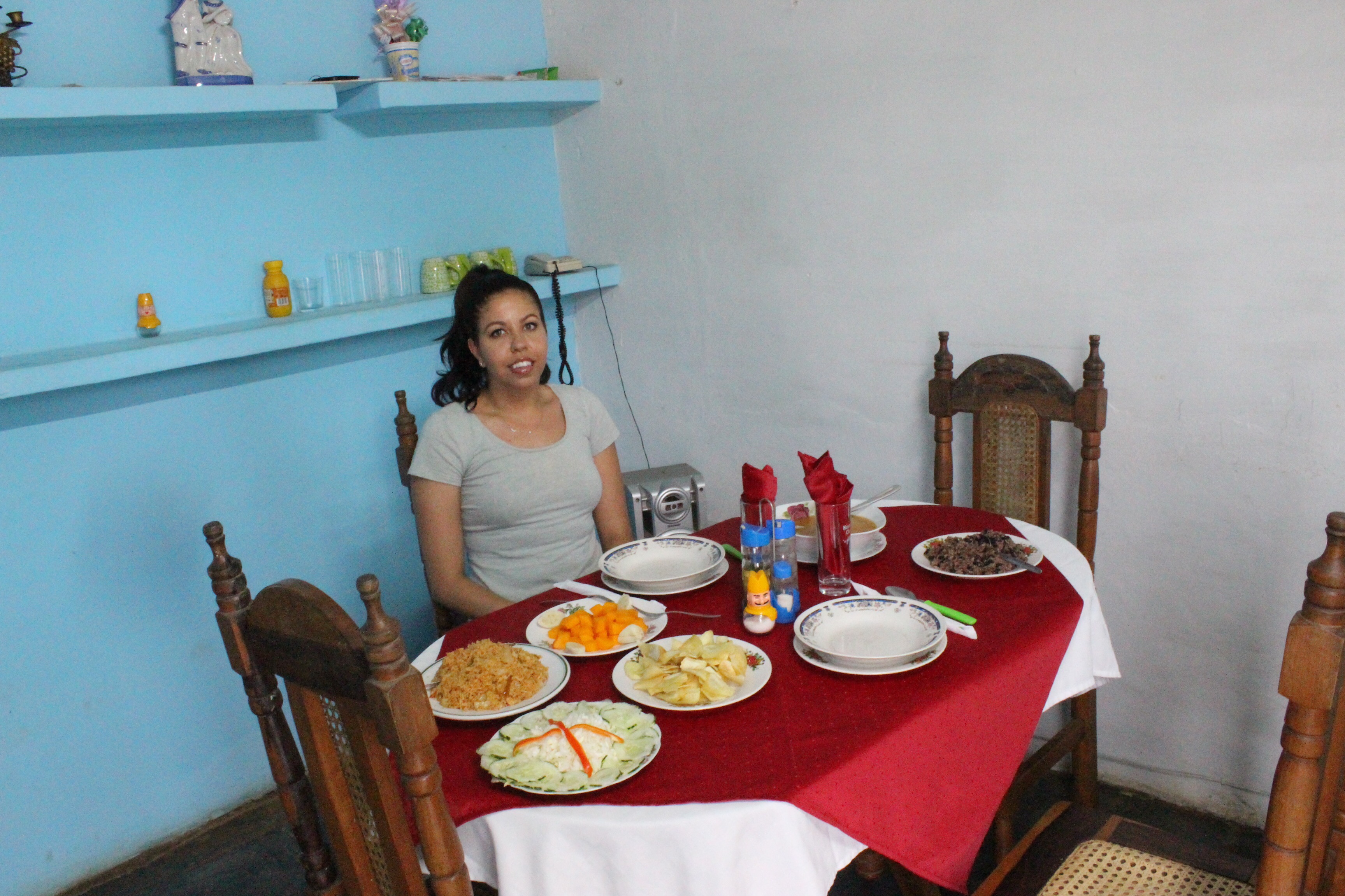 In the evening we had dinner at the house cooked by Magdy. With front door wide open we sat in her reception room and were treated to fried malanga, vegetable rice, salad, black beans and fruit salad having seen it almost field to plate that same day.