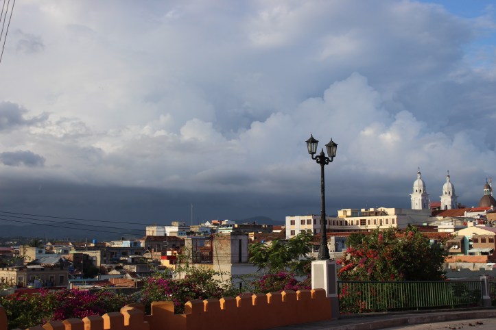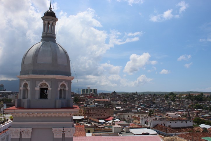 We had lunch at one of our safe places as we were becoming so picky with the limited options, the rooftop of the Casa Grande hotel. The building sits adjacent to the cathedral in the Parque Cespedes, one of the elder buildings in the city and the view takes in the whole port and the busy happenings of the city below. Each time we walked to this square we would pass a barbers shop where the old barbers at on the step with his scissors. Each time without fail he would offer me a haircut and snip his scissors together which never failed to raise a laugh.