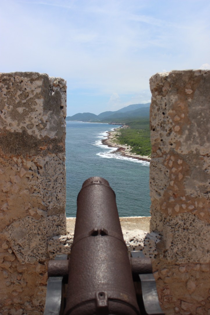 Having glanced the Castillo de Morro from afar, it became our afternoons mission to get out to it. We were later to learn that it was the second fortress in the city and was built in 1638. Our journey there was in a green Chevrolet and through the intersections of the blocks he would honk rather than slow down for traffic which could be weaving in the other directions. Santiago’s harbour has a very narrow mouth and is in parts only 13 metres deep. With the fortress at the end of the bay it was an ideal place to guard this port city, and a beautiful look out point.