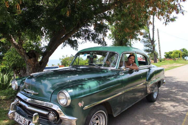 In the afternoon, our Chevrolet chauffeur took us to the beach at Buey Cabón. Due to the lack of cars, transport is pretty costly, but it’s like rolling up everywhere as if you’re going to prom. Being Sunday, lots of local families were at the beach, having big cook ups, hanging out under the wooden umbrellas. We watched a man who had indulged in too many rums fall backwards off his bench and not really register he was now lying in the sand. The water was bath temperature, much warmer even than Trinidad in the centre of the country, so even splashing around in the water didn’t cool you off from the intense heat. Being a natural cove, the water was shallow and calm with a few small fish. I kept seeing this strange fuzzy fish in the water, but after closer investigation I realised it was the well devoured inside of a mango that lots of people were eating whole whilst standing in the water. It was picturesque with big hills following the coastline. Dense greenery went all the way to the water and alongside the dogs and chickens, pigs grazed the fruit scraps too.