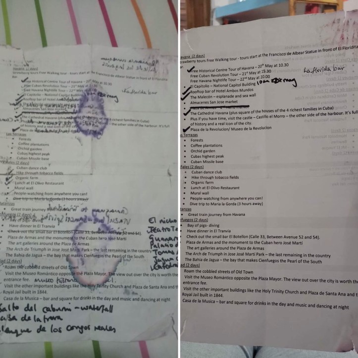 For three days we indulged in cute eateries, balcony beers and quaint side streets which both seemed markedly more expensive returning from outside the capital, but tasted all the more worth it as we craved different flavours. We also noticed tourists! It was still low season but we had seen very few throughout the rest of Cuba. There was still the unwelcome smell of hot trash at each intersection and the persistent calls of women selling ice creams or dry goods walking up and down the streets. Whereas we were once overwhelmed by how different it was, on our return I was struck with how European it felt, particularly the warm nights in cobbled squares with music playing.