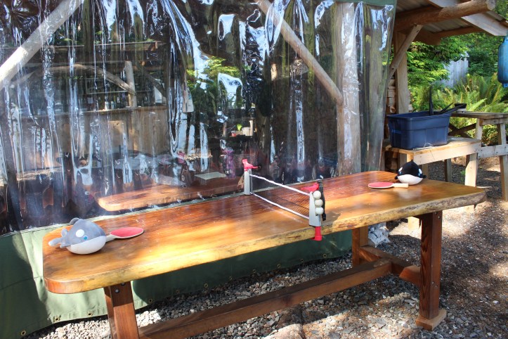The welcome..Ping Pong is our favourite pastimePropping up the bar..Our ‘work week’ is a three day trip on repeat, so it starts as it begun on the final day. Our trip arrives on the water taxi from Telegraph Cove around midday and as we wish our departing group an emotional goodbye, we welcome new faces, new names to remember, new memories to create. The new group share in a soup lunch and get to hear JD’s speel on how to store your toiletries and fight off Cougars. Then we walk to humpback point to explore the trails, checking out the shower and open air bathtub on the way to spot wildlife from land. Having found their feet, the group heads out on the trusty Tenzing, named after Tenzing Norgay, Sir Edmund Hillary’s Sherpa as it’s known for being able to carry big loads.