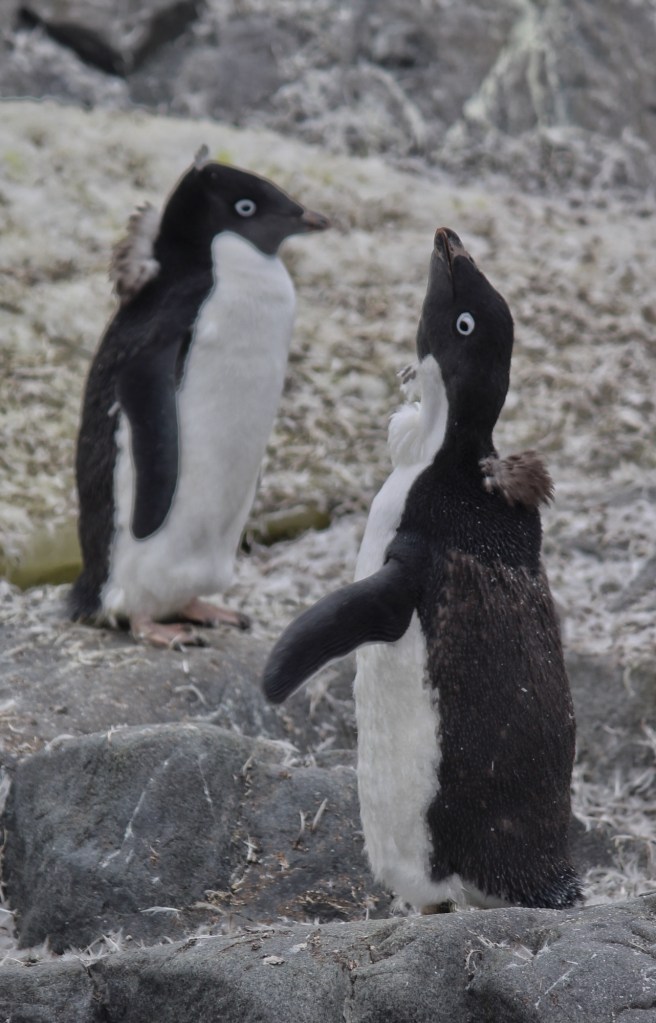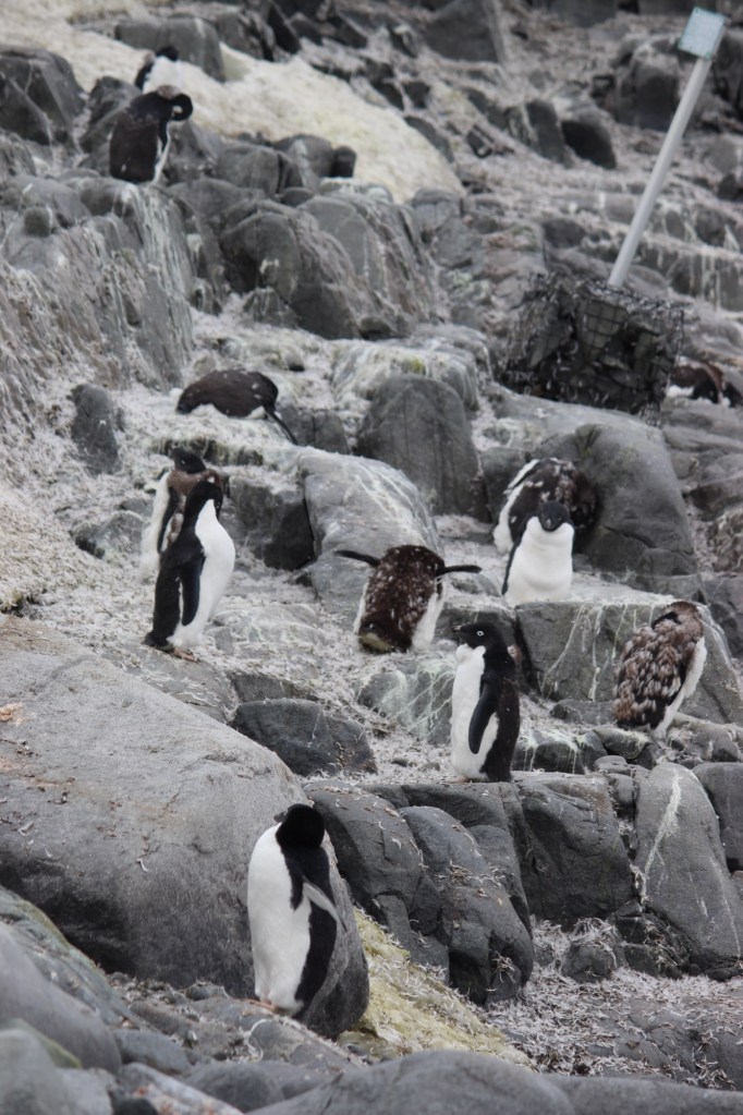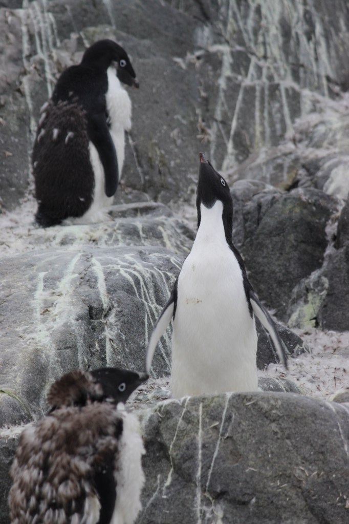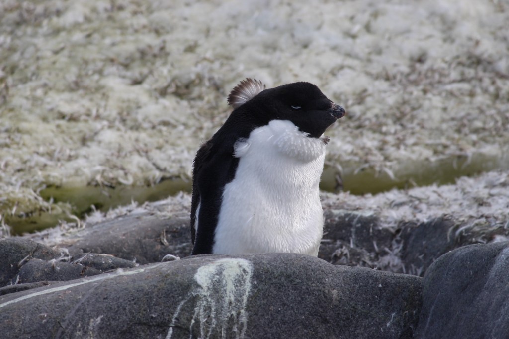 The fur seals were lulling about, getting up occasionally to growl and fight. The penguins, mid molt, were congregated on the remaining snow, either powered down in a nap, eating snow, or annoying their neighbour, which all made for good viewing.