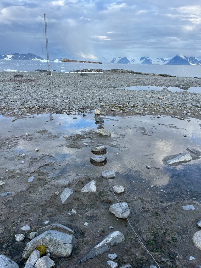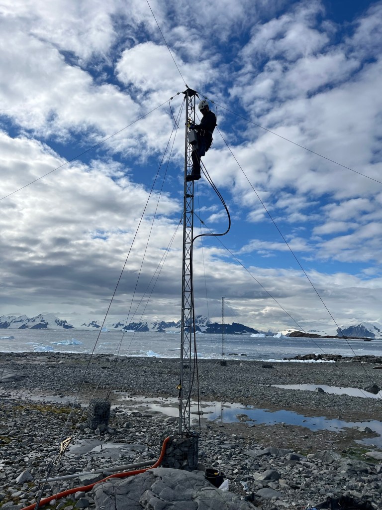 Andy climbed the mast, whilst Liam worked as ground crew, removing all of the wires which connected this mast to the surrounding ones. As the mast was in three sections, held by guy lines from the top, they set up new guy lines at the two thirds point and a gin pole to support the top section when the guys were removed. In reality, I did very little, but apparently was a good omen for wildlife as we spotted Orcas in the water as we finished up the mornings work.